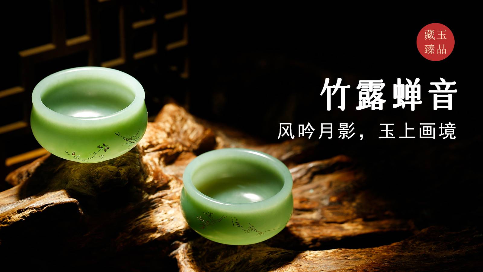 竹露蝉音(对杯),俄罗斯器皿,风吟月影,玉上画境