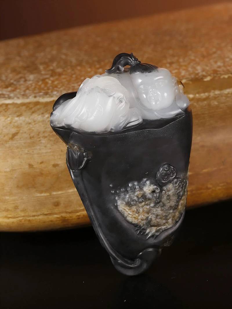 青花料里的墨色是玉石里天然含的石墨颗粒,这些石墨很多是薄片状的,光线照到片状石墨的切面时,就会反射出亮闪闪的光点,看着像撒了层细银粉,老玩家就叫它银沙。