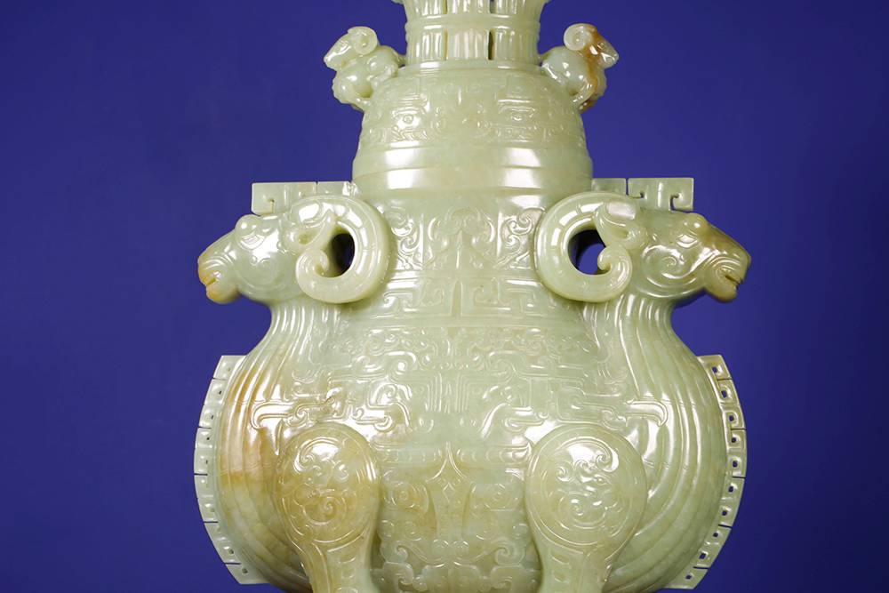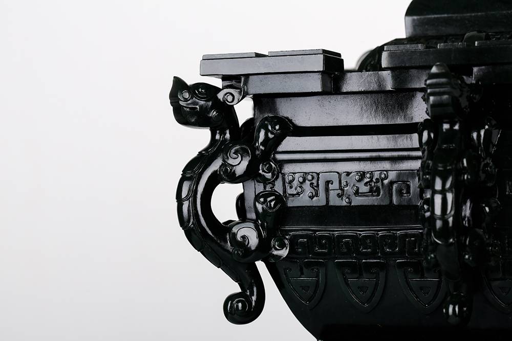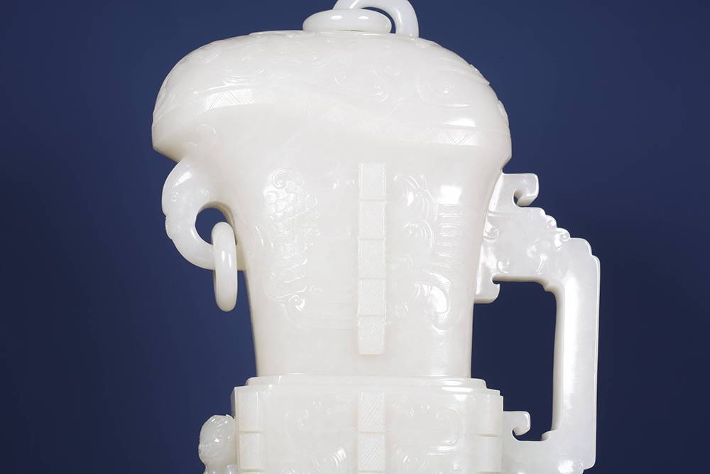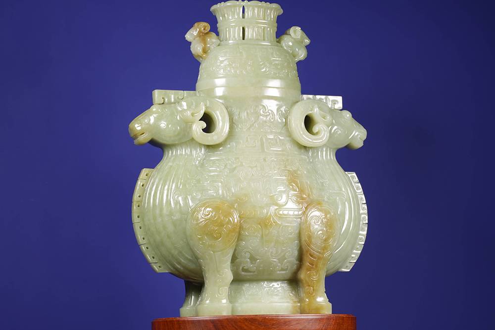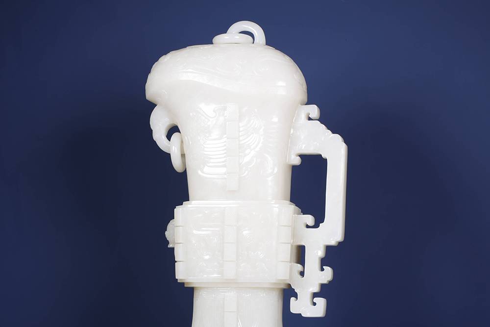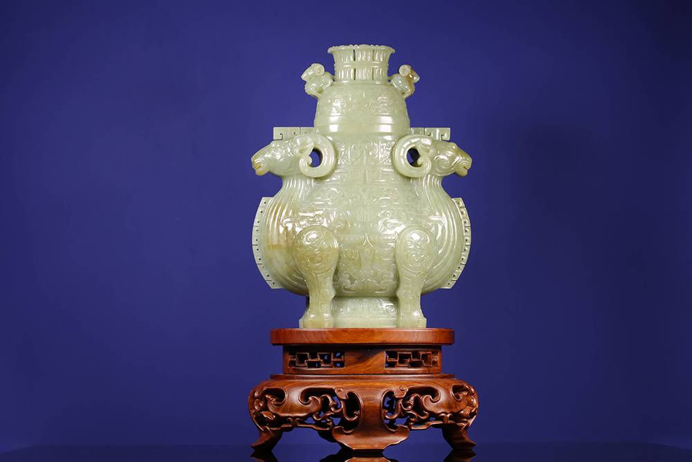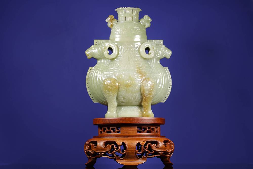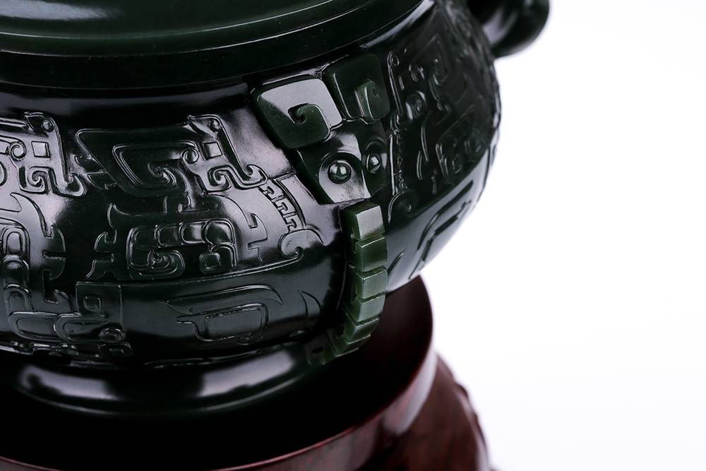 以玉仿青铜古器,最难在气韵相通:复刻古器而不失玉润,工极细而意犹古,此等佳作,可赏可藏,置于宝阁、案几,便是文脉传承。