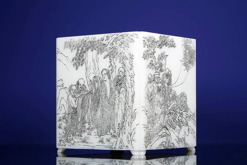 整器既有刻工之精,复现画意之妙,是谓高品级玉料作实用文房器,本就奢侈,可贵者,是它以刀笔融通古今,能伴案头清赏,亦为传世收藏,一器可兼雅致与珍罕,是识者之选。