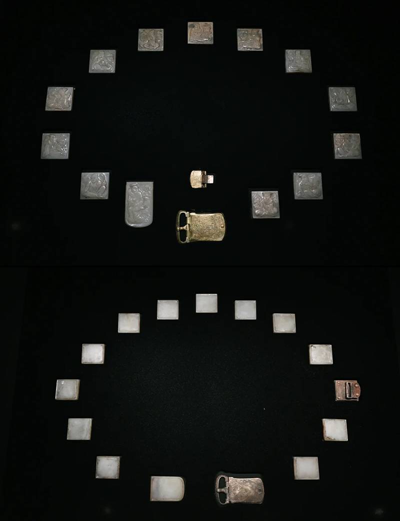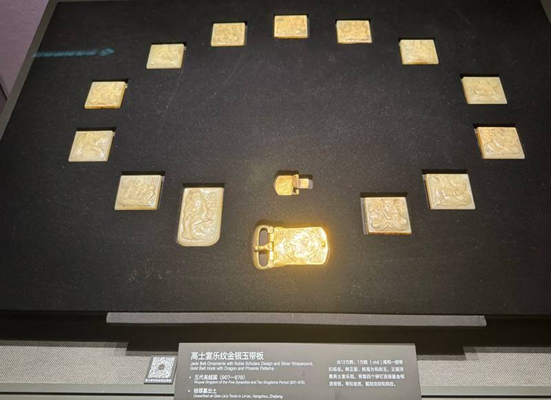 在《太平年》中,玉带成为官员等级与政治立场的重要视觉符号。剧中三品以上重臣所佩十三块玉板玉带,其原型正是临安吴越文化博物馆藏的“高士宴乐纹金银玉带板”。