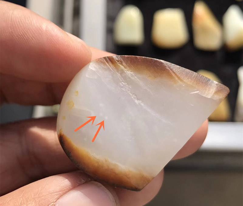 上面我们看到了和田玉里各种颜色的瑕疵,那么白的也要说一下。