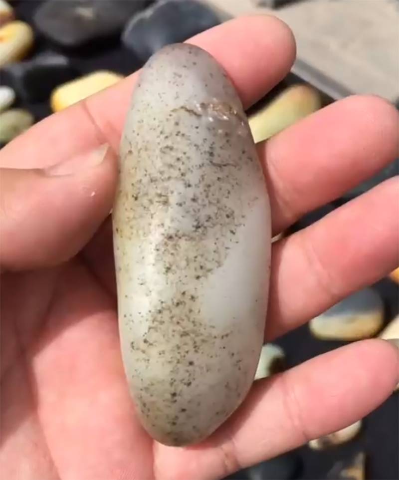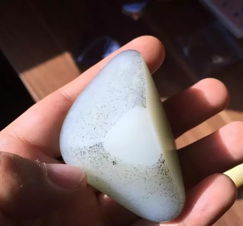 当一个近满皮的籽料外形上看起来有不太对的地方的时候,那么这个料就是有问题。