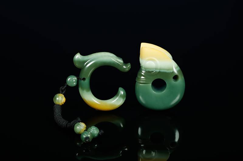 以河磨料为材,琢红山文化极具代表性的C形龙与猪龙,浓绿、奶白、金黄,三色天成,像地层剖面,古朴的器型,圆润的线条,凝缜的弧面,握在掌心,仿佛握住千年的信仰,河磨料的温润,恰恰还原了古玉的神韵——不是复制,是复活吗,仿佛收藏一段文明的童年记忆。