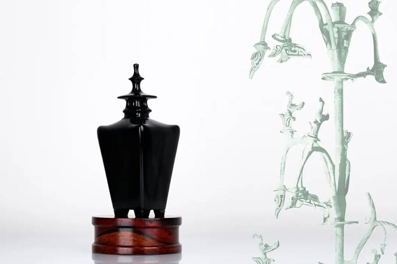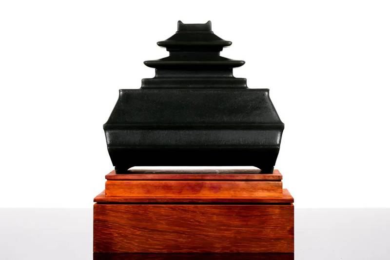 他的突破,始于将古建筑元素融入玉雕器皿的大胆尝试。“很多人做器皿参考青铜器、瓷器,但我想做不一样的。”2018年藏玉九周年时,他推出“隋唐”系烈,以简练的直线和飞檐意象,营造出大唐建筑的磅礴气势。此后三年,他仅推出四件器皿作品,每一件都是对“建筑感”的深度思考。