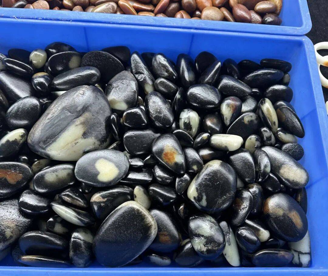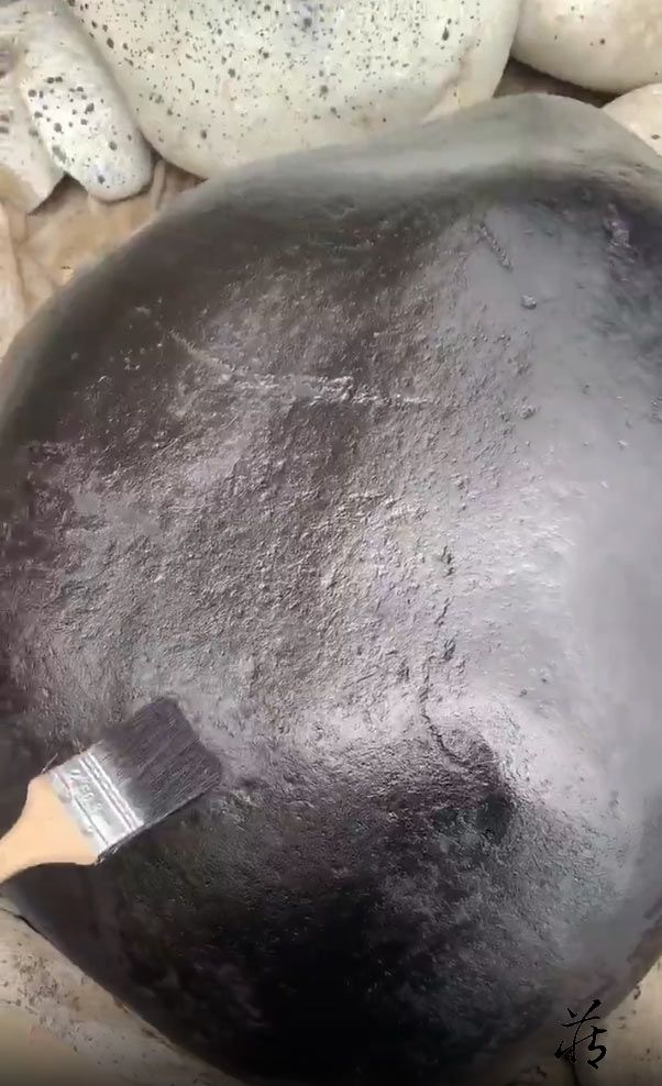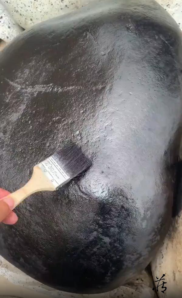 用刷子给石头刷上黑漆,最后直接变成了巨无霸大黑料,后期可以用来冒充墨玉或者黑皮籽。