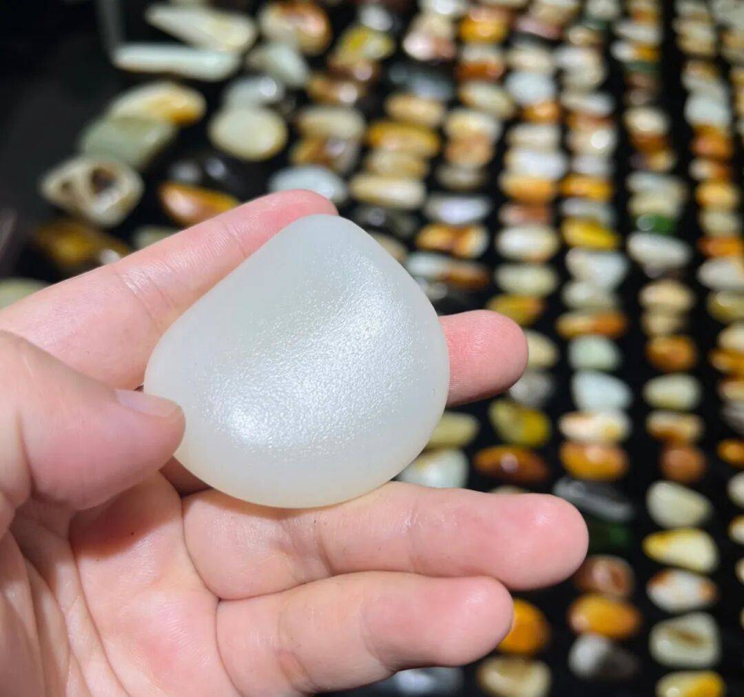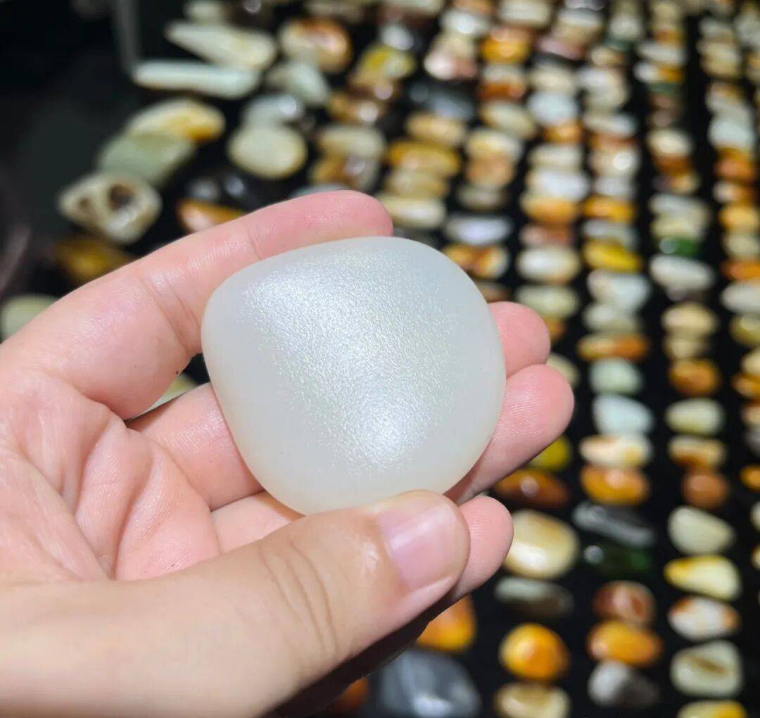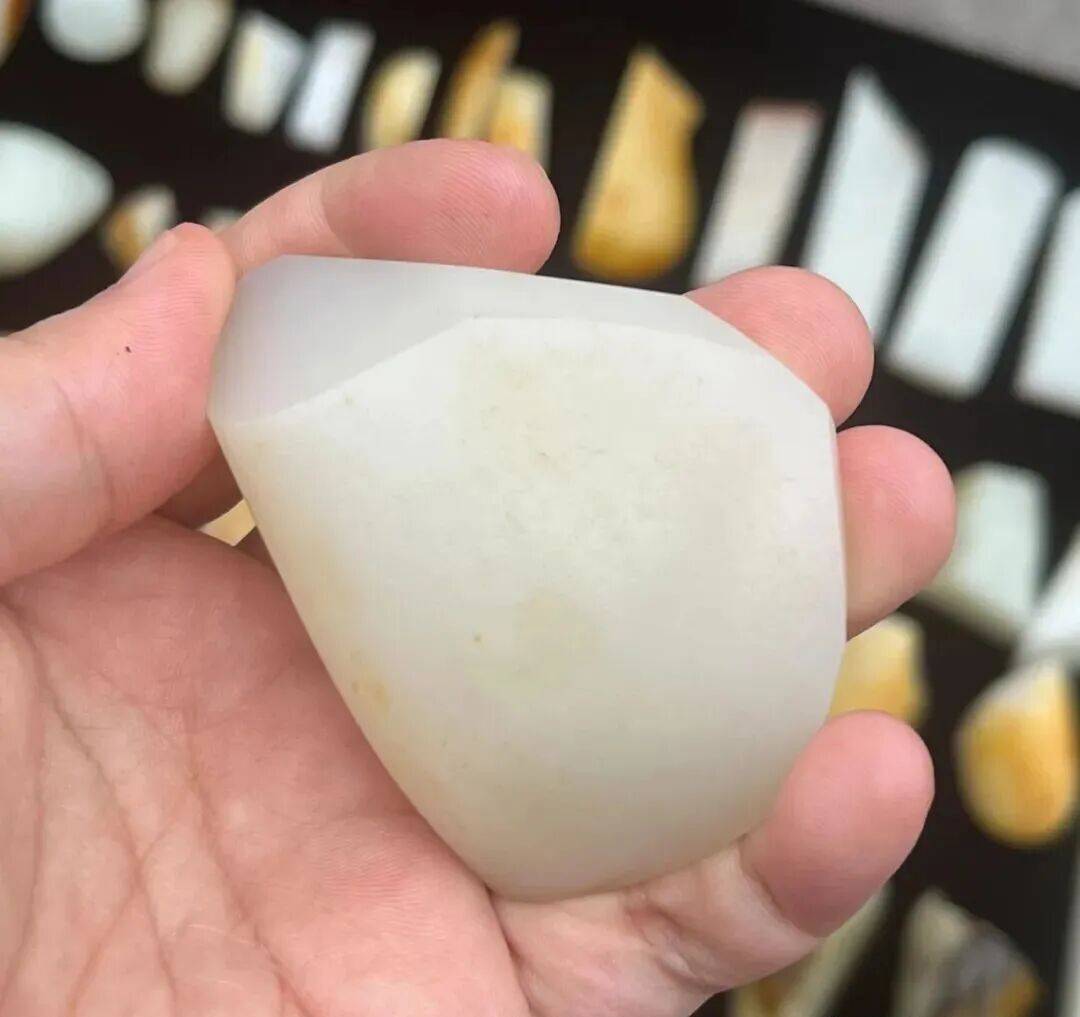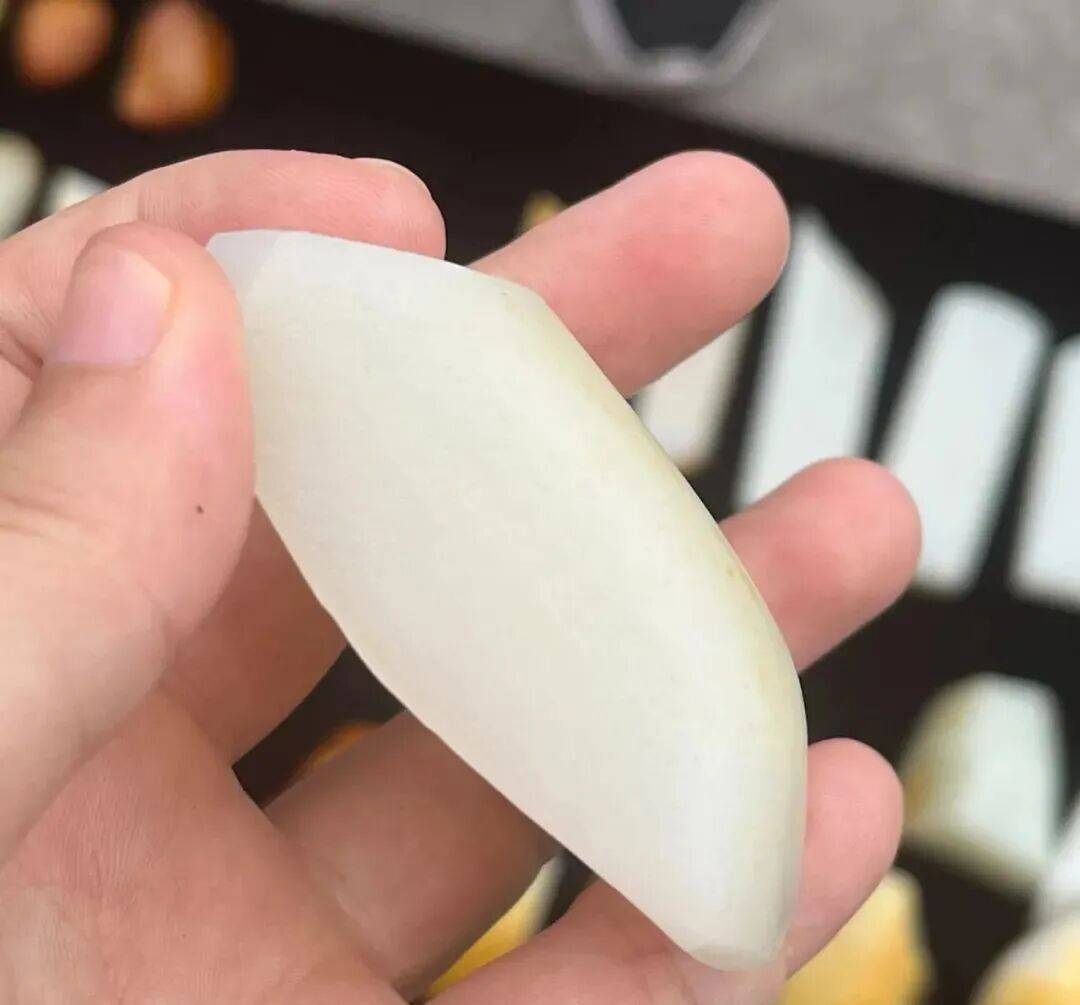 这个籽料乍一看跟光白籽区别不大,而且看起来品质还很好。但它也是一个假光白籽,并且是一个料器造假,这水准应该可以骗过90%的新手了吧。