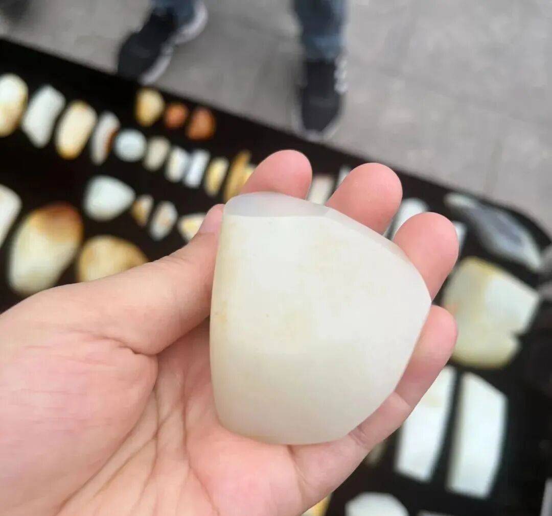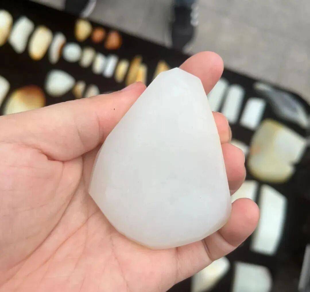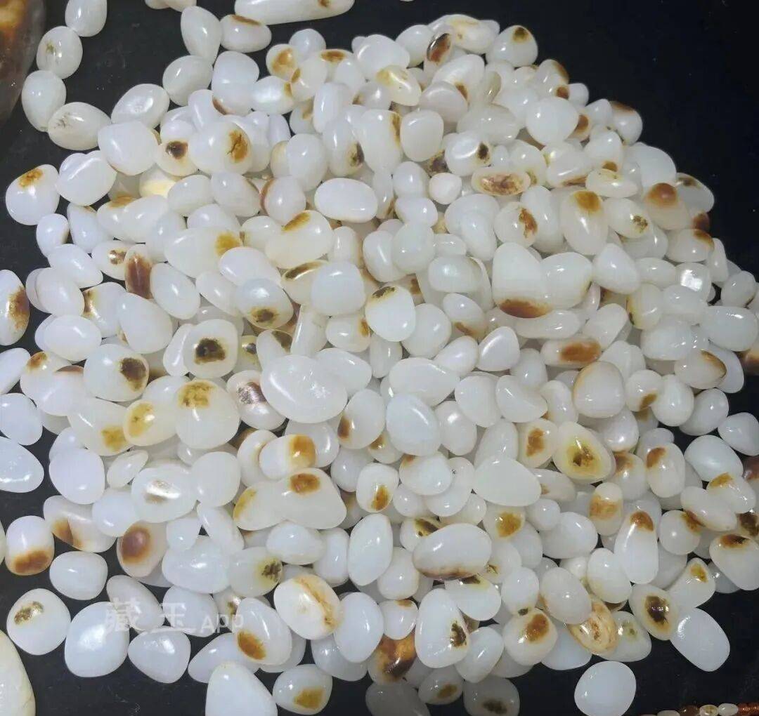 这个籽料乍一看跟光白籽区别不大,而且看起来品质还很好。但它也是一个假光白籽,并且是一个料器造假,这水准应该可以骗过90%的新手了吧。