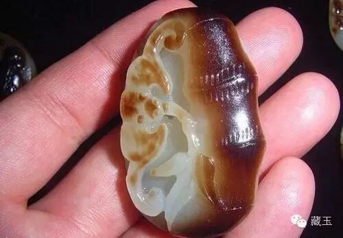 烤色和染色的注意区别是烤色更加持久不掉色,皮色老更入肉。上面这个就是典型的烤色类似的东西,做成雕件后很容易上当受骗。