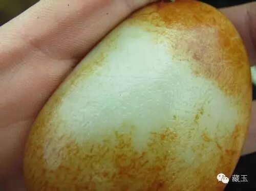 首先来讲韩料的假皮色,同所有的假皮色一样,染色的料子总会有点飘,颜色仅浮在玉料的表面,没有层次感,而且过度很直接,没有天然籽料的那种有浅有深的过度。