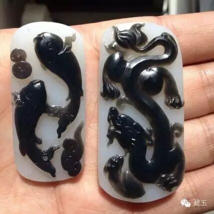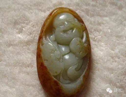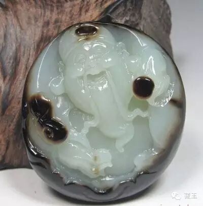 ▲号称是籽料黑皮精雕,一眼假~