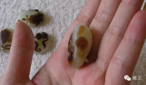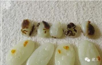 ▲仿籽料的韩国烧烤,这个韩国烧烤技术不过关,时间久了,有些染色部分已经掉色。